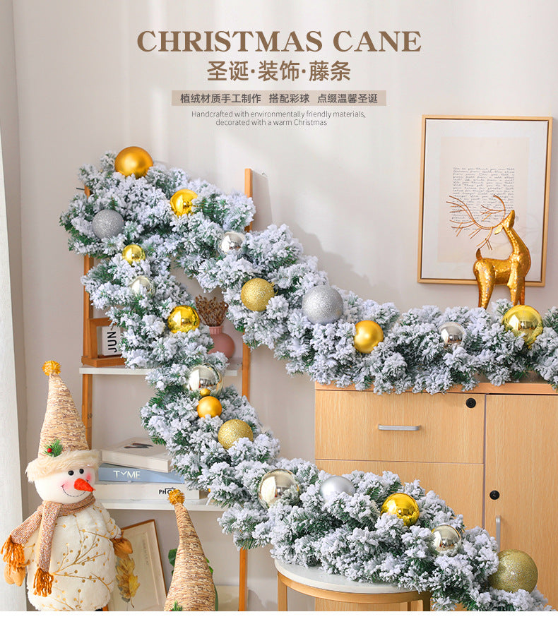 2.7M Christmas Pine Garland Snow Flocking Falling Cedar Rattan Artificial Greenery