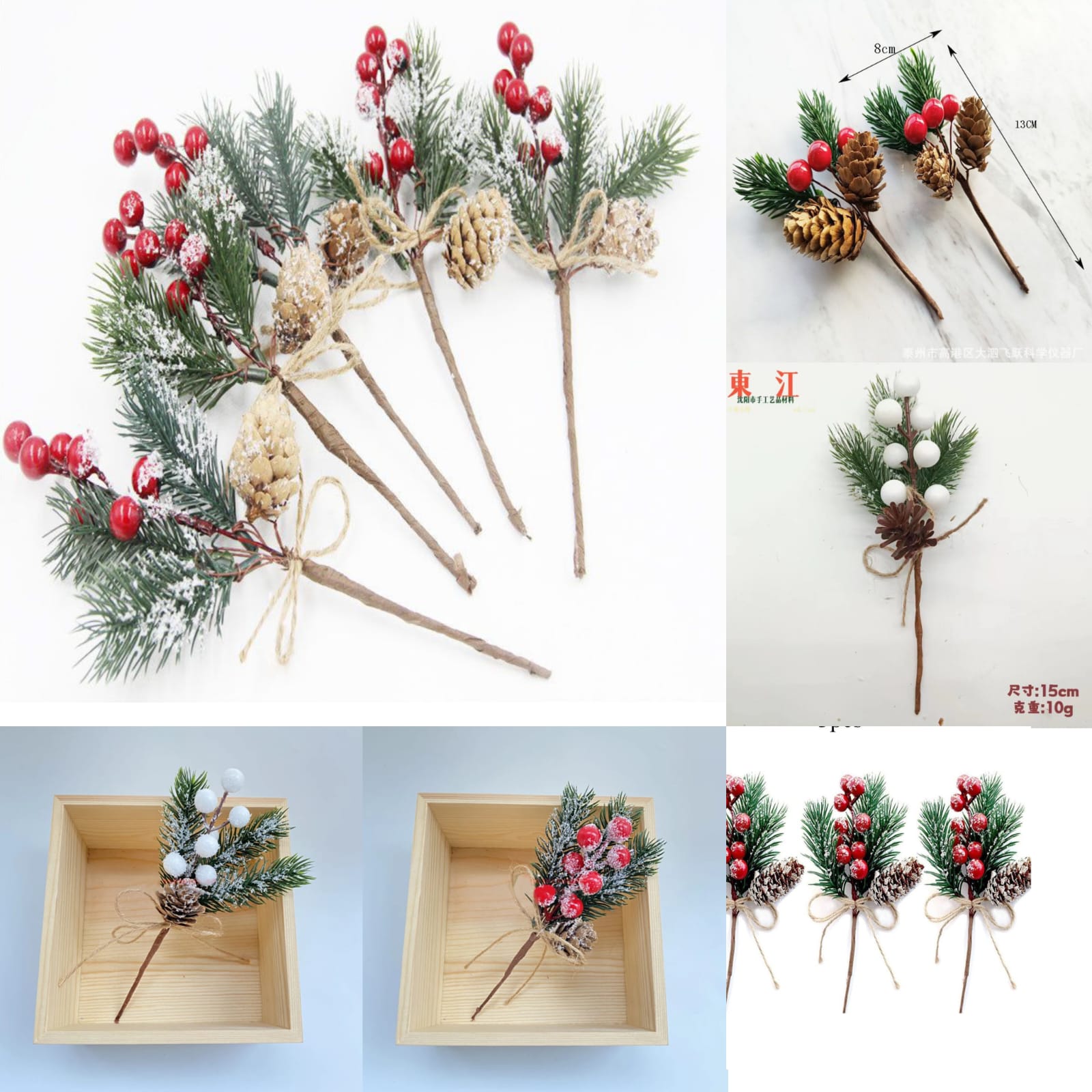 2Pcs Christmas Red Berry Articifial Flower Pine Cone