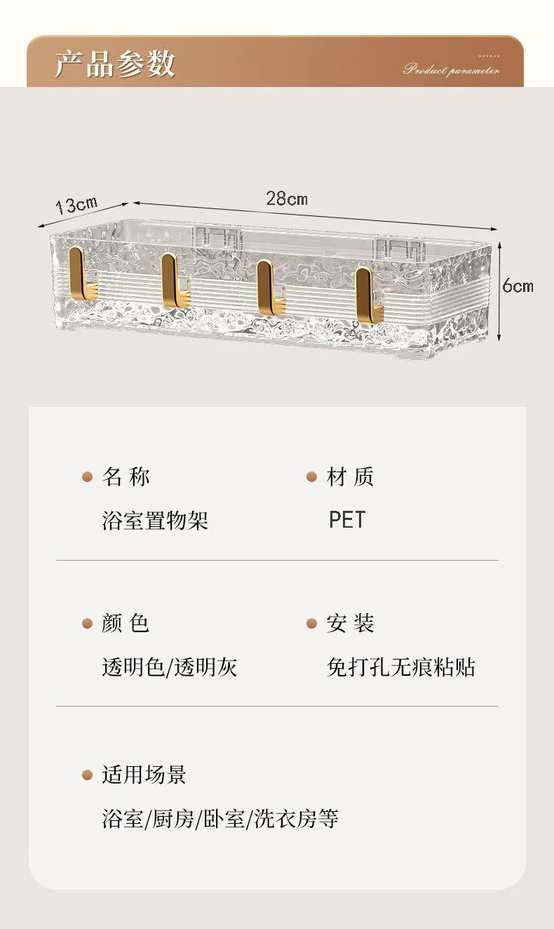 Acrylic Wave Patterned Storage Shelf with gold colored hooks