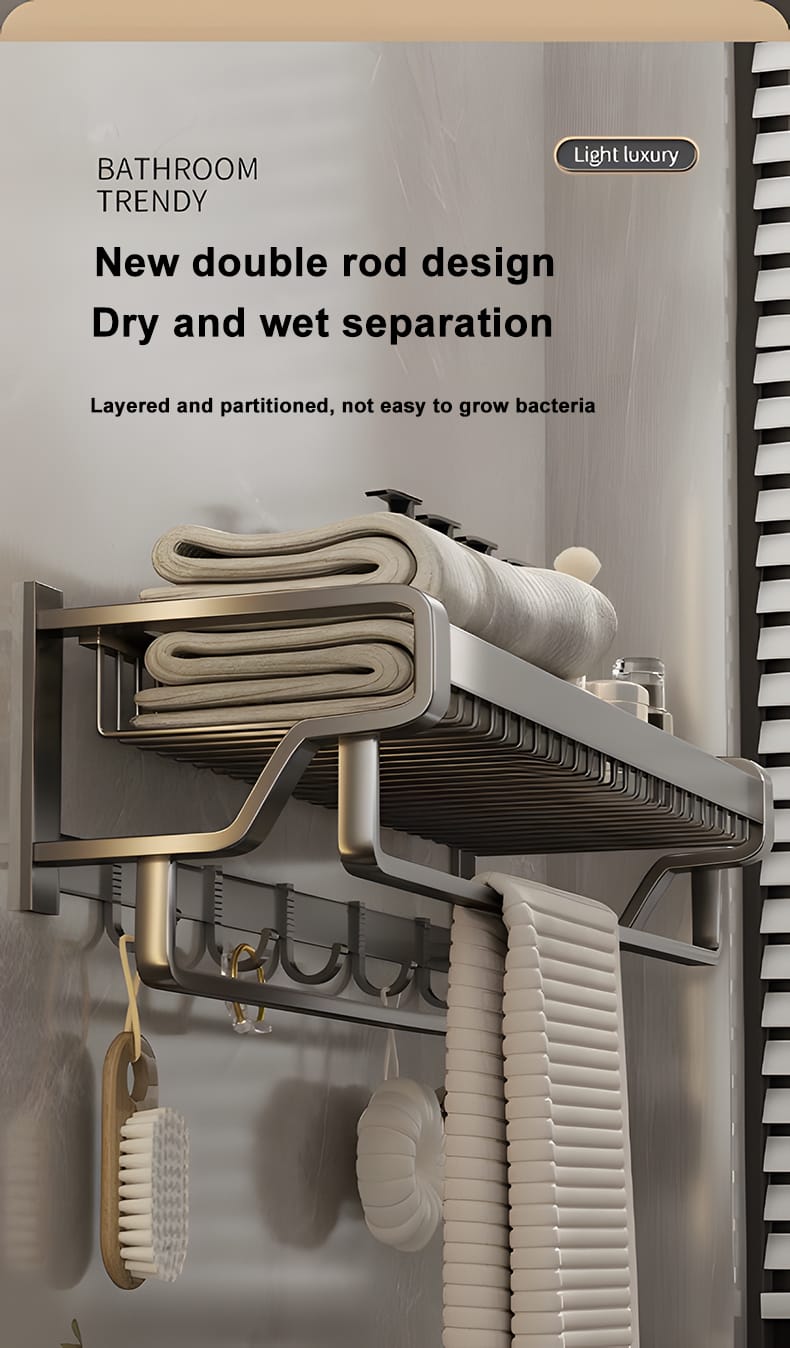 Bathroom wall mounted towel rack accessory with hooksÂ