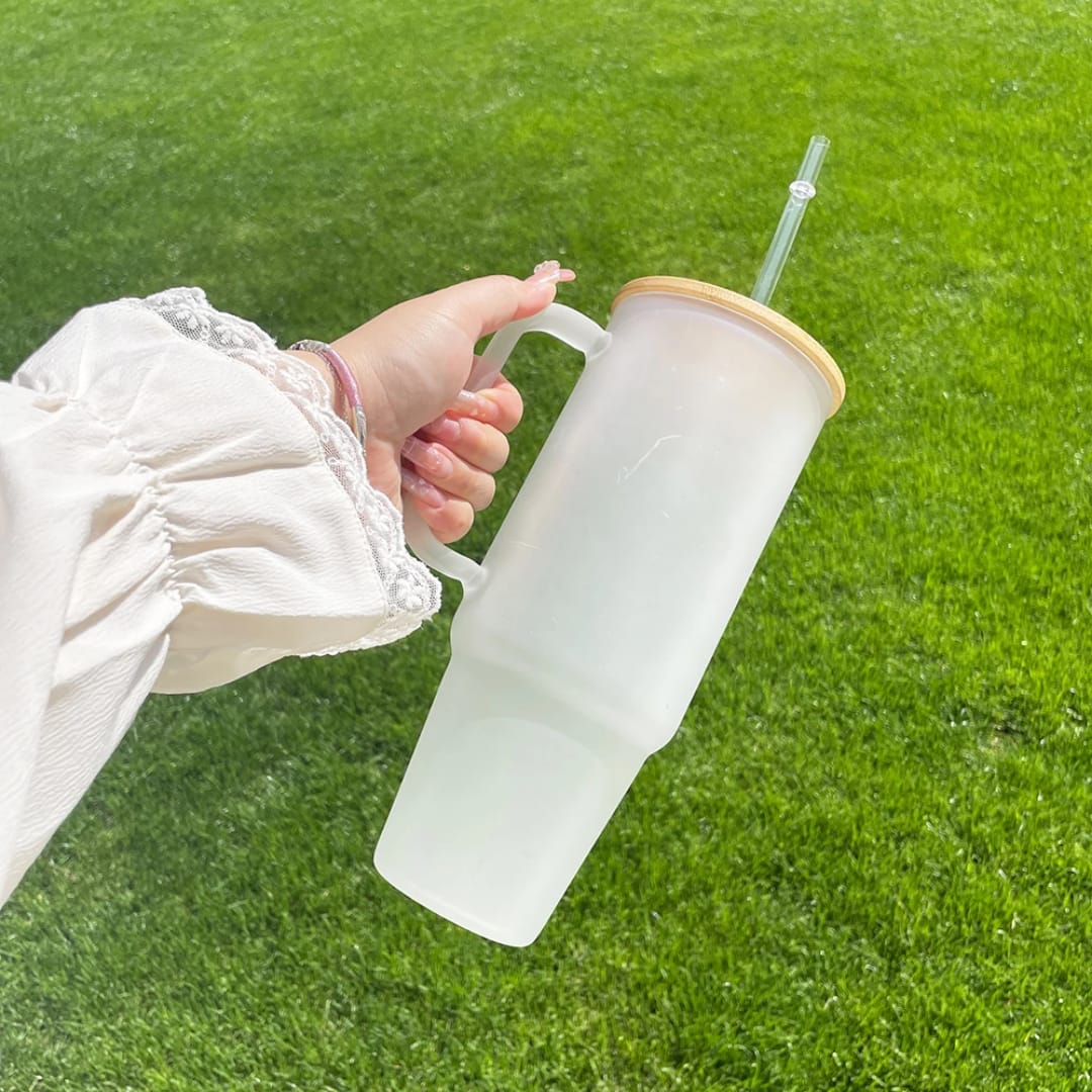 Borosilicate Bamboo Drinking Glass Cup/Tumbler with lid + Straw