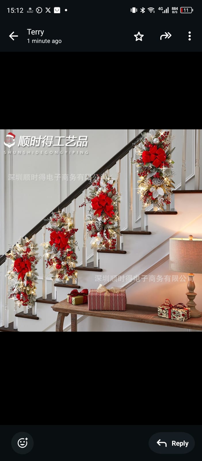 Christmas Swag Wreath Pendants LED Lights Staircase Wreath Ornament Swag Trim Garland Door Window Decoration*