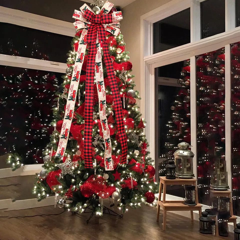 Large Christmas Bows 110cm Plaid Bowknot Christmas Tree Decoration Ornament New Year Home Decor Handmade Gift Bows