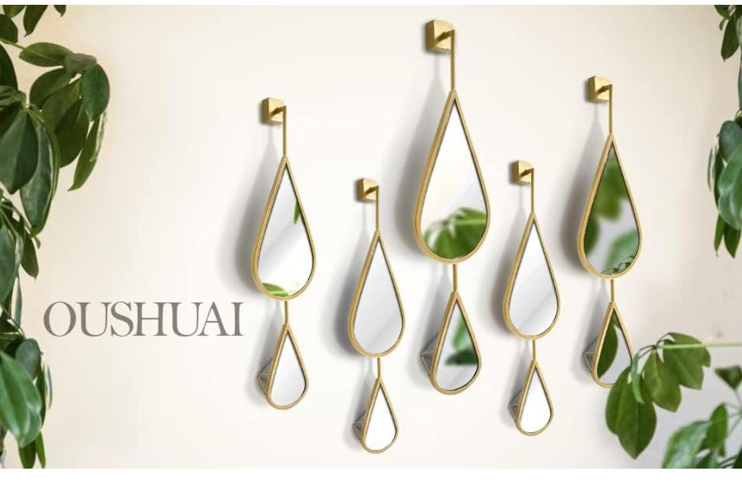 OUSHUAI Set of 5 Gold Teardrop Shaped Wall Mirrors for Living Room, Entryway, Hallway, Staircase, Fireplace